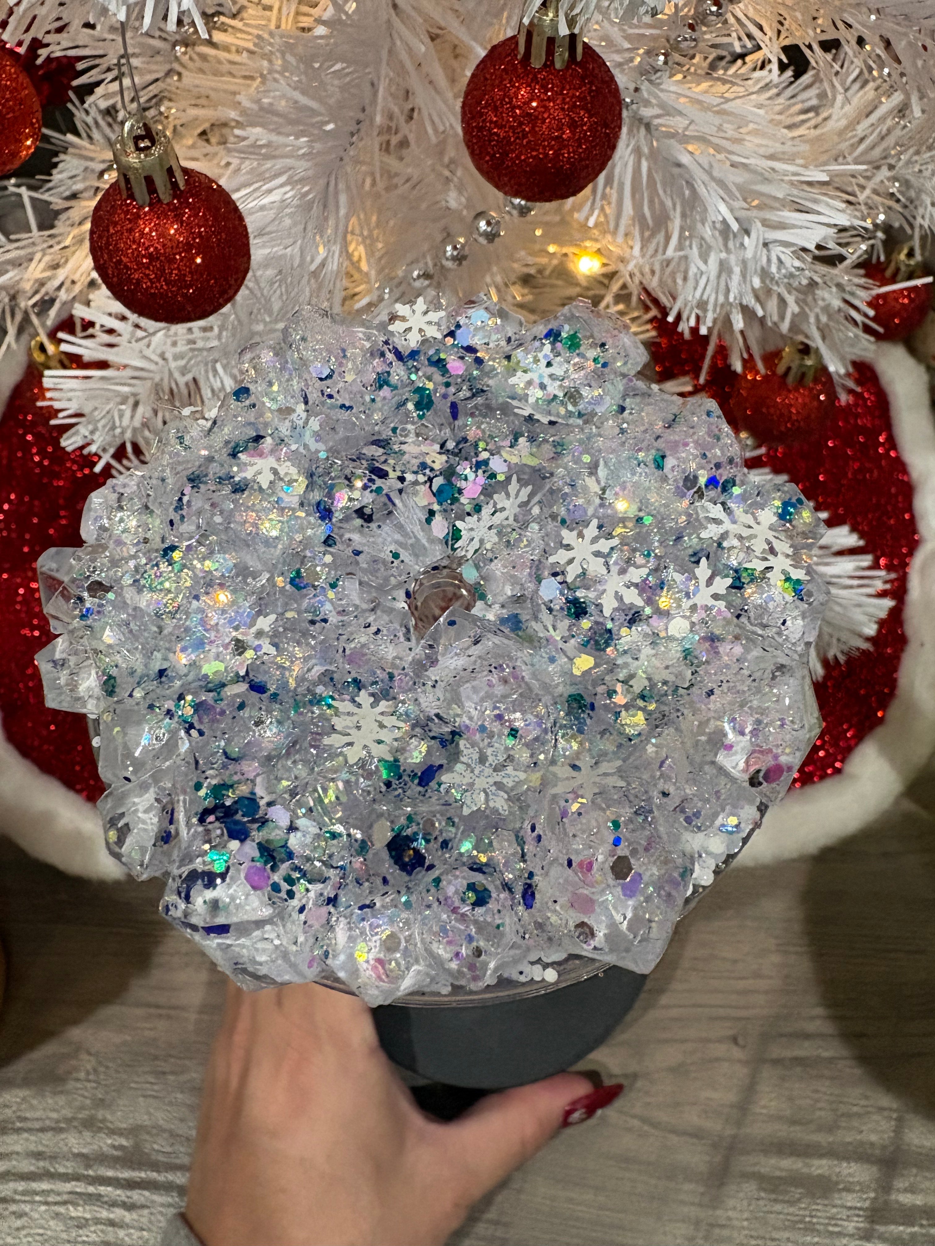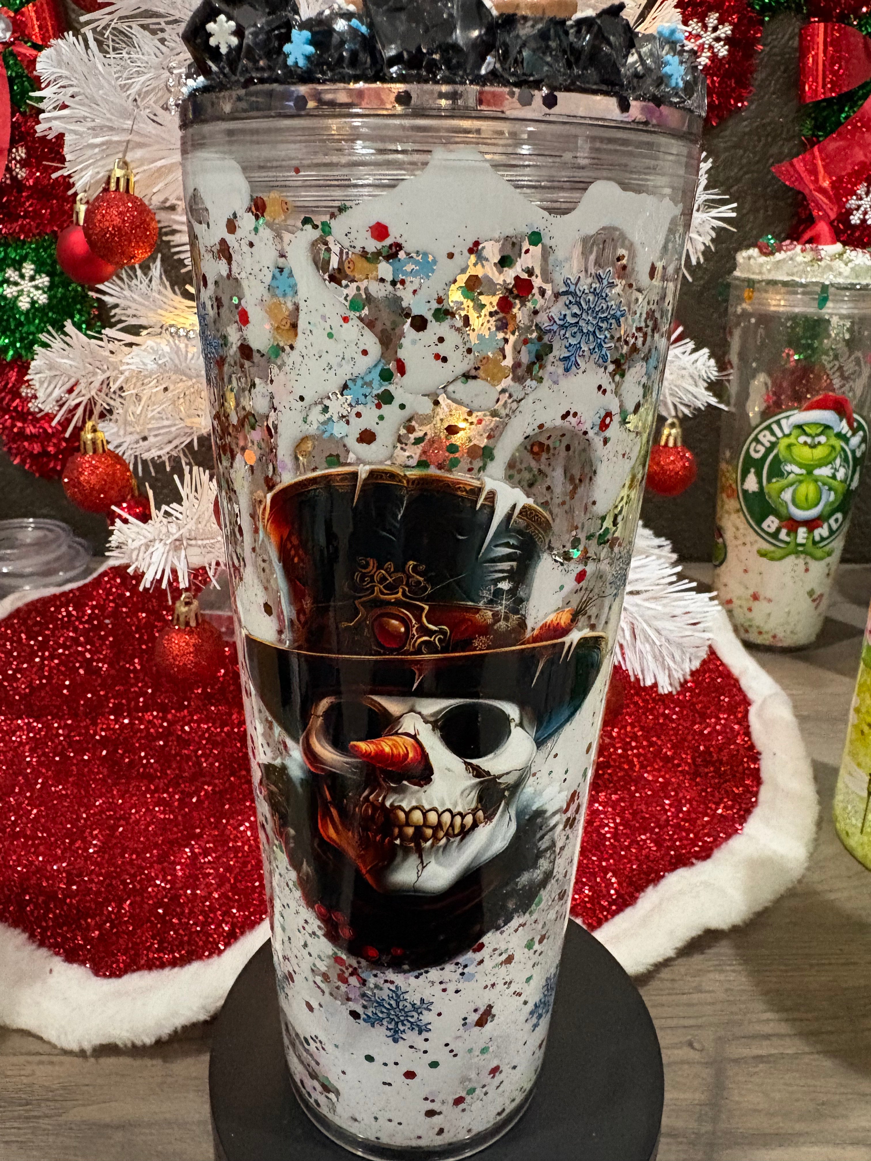 Snow Globe Cups - Select cup add to cart select wrap design and add to cart. Add note at checkout for included glitter colors. pick up to 5 glitter colors included in price. Lastly let us know what type of cup Lava, Dual lava, Drip or all glitter.